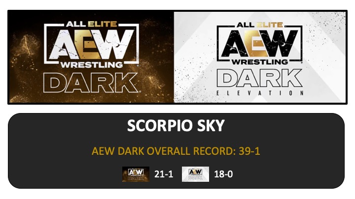 | AEW Dark #39 2020 June 23 Scorpio Sky vs. Lee Johnson (4:58) | AEW Dark #38 2020 June 16 Scorpio Sky vs. Robert Anthony (9:32) |